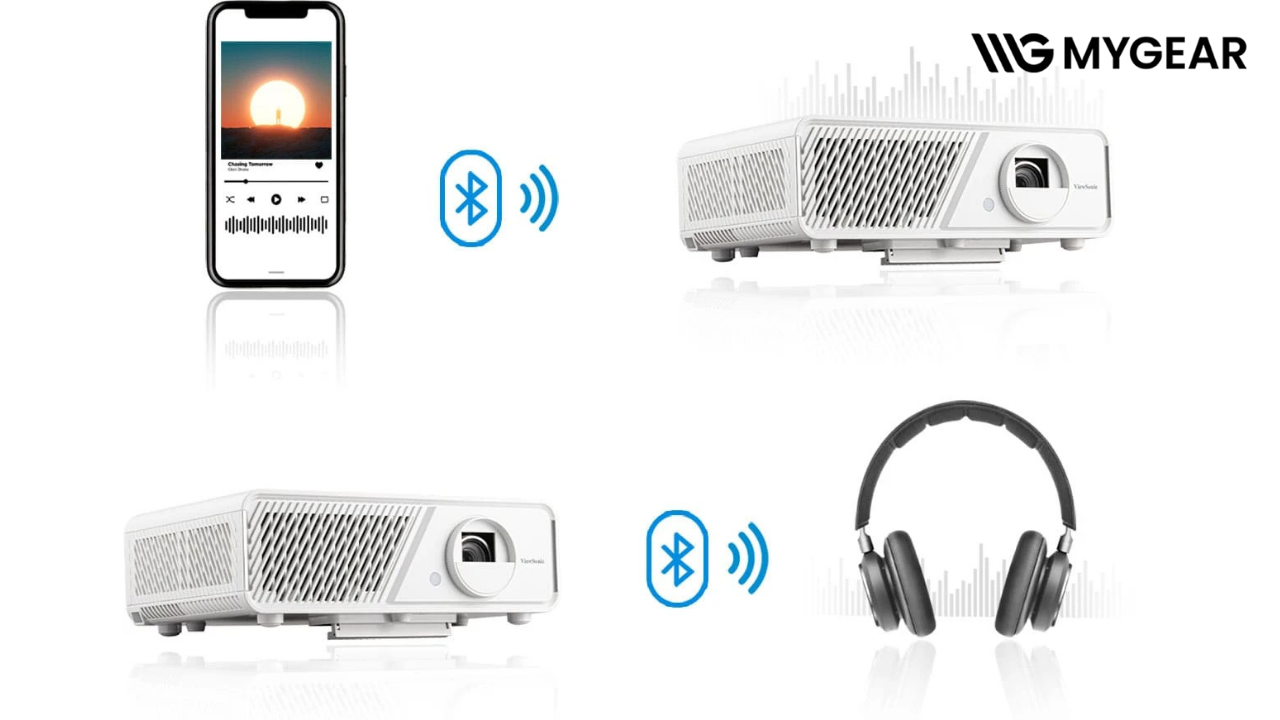 Máy chiếu Wi-Fi Bluetooth ViewSonic X1 hỗ trợ trình chiếu không dây từ điện thoại, laptop hoặc máy tính bảng thông qua Wi-Fi 5GHz tốc độ cao. Bạn có thể chia sẻ nội dung nhanh chóng chỉ bằng vài thao tác, không cần dây HDMI phức tạp. Ngoài ra, kết nối Bluetooth hai chiều cho phép phát âm thanh từ máy chiếu đến loa hoặc tai nghe hoặc dùng máy chiếu như loa Bluetooth khi nghe nhạc, cực kỳ tiện lợi và thông minh.