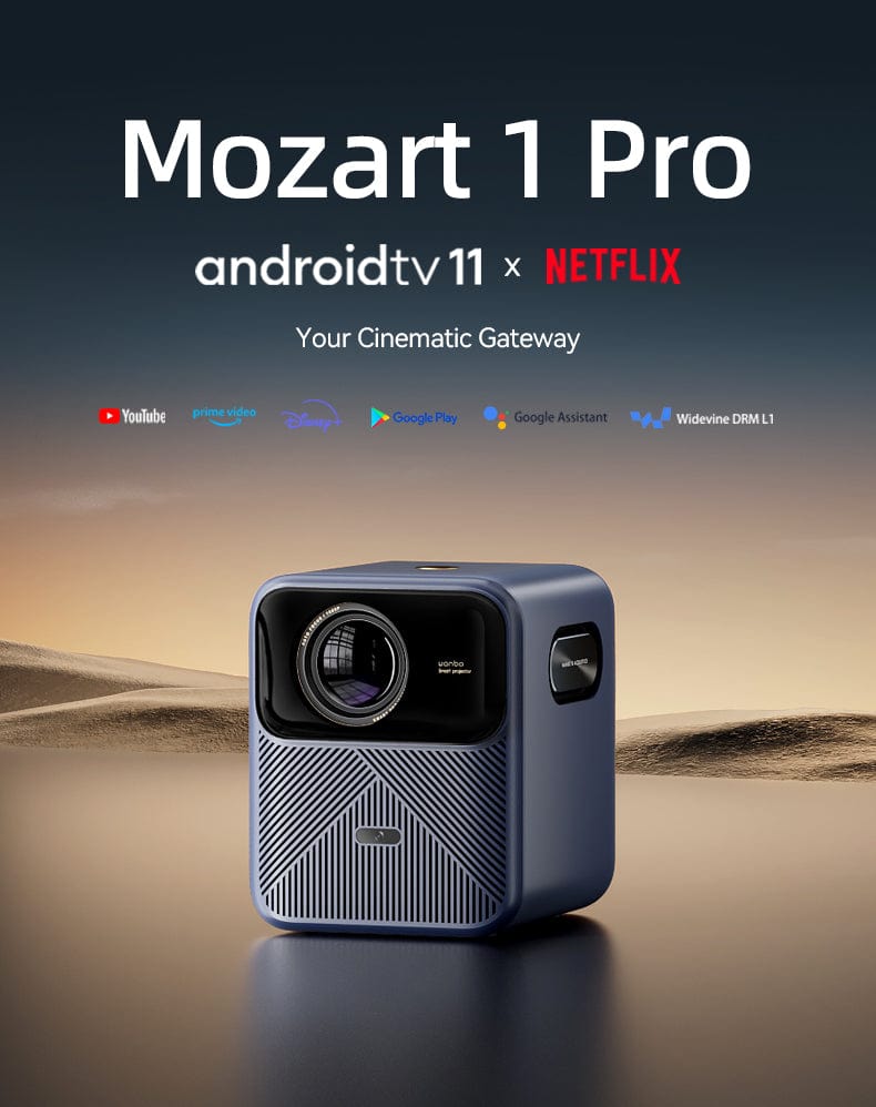 Với hiệu suất mạnh mẽ, khả năng truy cập trực tiếp Netflix, YouTube, Prime Video cùng thiết kế hiện đại, Wanbo Mozart 1 Pro projector là sự lựa chọn lý tưởng cho những ai đang tìm kiếm một máy chiếu Android TV 11 thực thụ cho trải nghiệm giải trí tại nhà đỉnh cao.