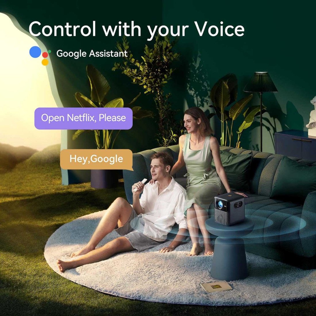 Một trong những điểm nổi bật nhất của máy chiếu Wanbo Mozart 1 Pro chính là hệ điều hành Android TV 11.0 bản quyền tích hợp Google TV. Điều này cho phép bạn truy cập thẳng vào hàng ngàn ứng dụng phổ biến như Giao diện Google TV trực quan, dễ sử dụng, hỗ trợ tìm kiếm nội dung bằng giọng nói qua Google Assistant. Đây chính xác là một chiếc máy chiếu Google TV gói gọn đầy đủ trải nghiệm smart TV vào một thiết bị nhỏ gọn.