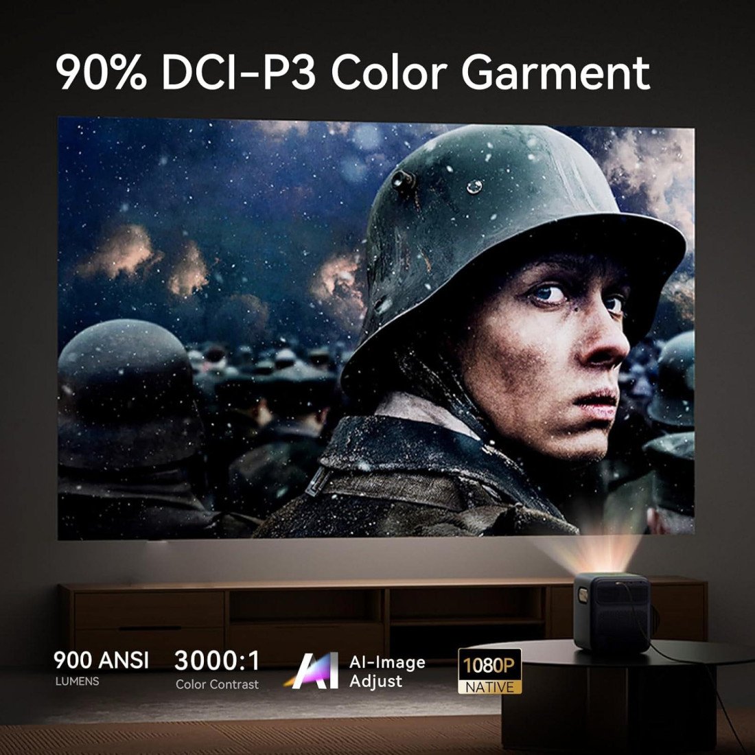 Máy chiếu 900 ANSI Lumens như Wanbo Mozart 1 Pro mang lại khả năng chiếu sáng tốt hơn, giúp màu sắc trở nên sống động và trung thực, đặc biệt là khi chiếu trên các màn chiếu hoặc tường trắng.