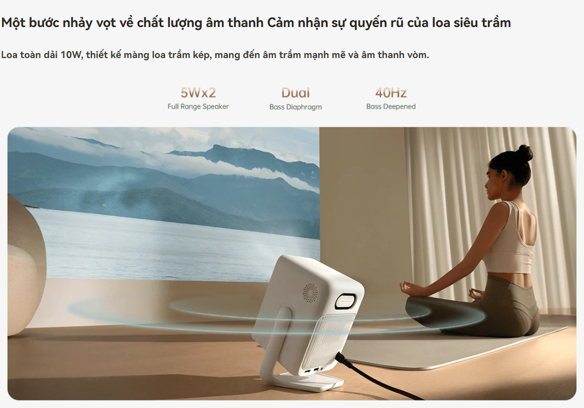 Với hệ thống loa kép 2 x 5W, Wanbo T2 Ultra mang lại âm thanh rõ ràng, cân đối, phù hợp cho nhu cầu giải trí tại nhà mà không cần loa ngoài.