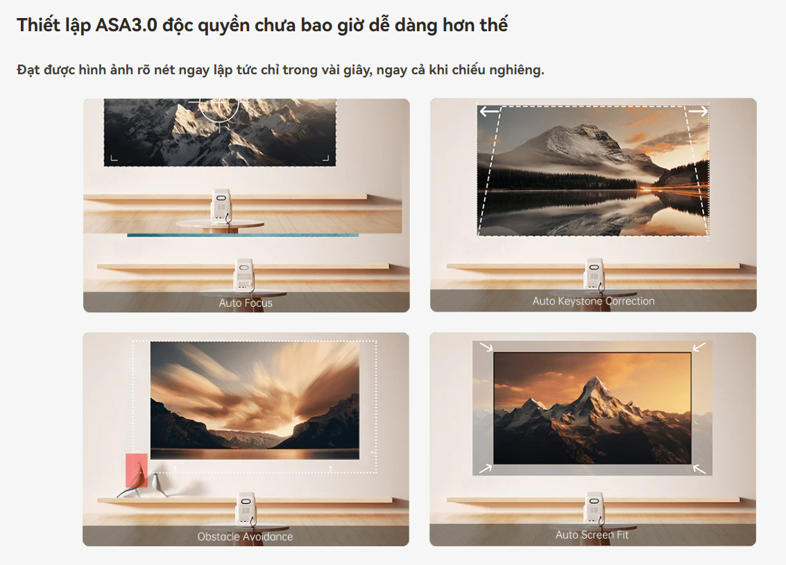| Căn chỉnh màn hình | Tự động vừa màn hình (Auto Screen Fit), Tự động tránh vật cản (ASA 3.0) |