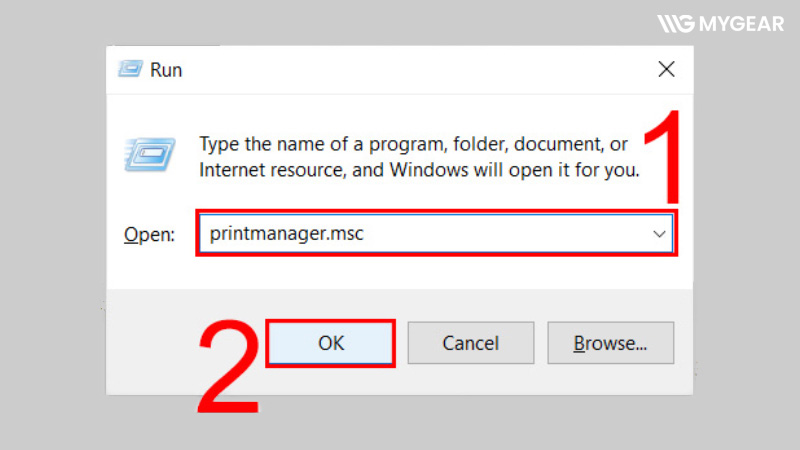 - Nhấn tổ hợp phím Windows + R, nhập printmanager.msc rồi chọn OK.