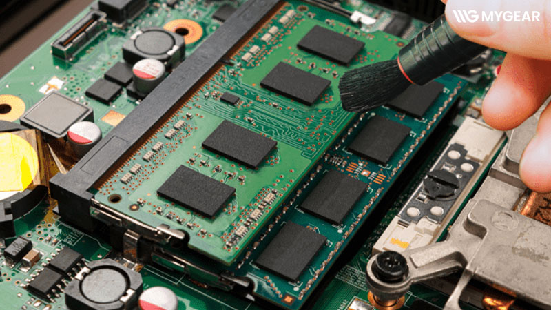 RAM: Tháo các thanh RAM ra, lau sạch chân RAM bằng khăn khô hoặc bình khí nén, cắm lại đúng khe. Nếu máy vẫn không lên, thử sử dụng thanh RAM khác hoặc thử cắm RAM vào khe khác.