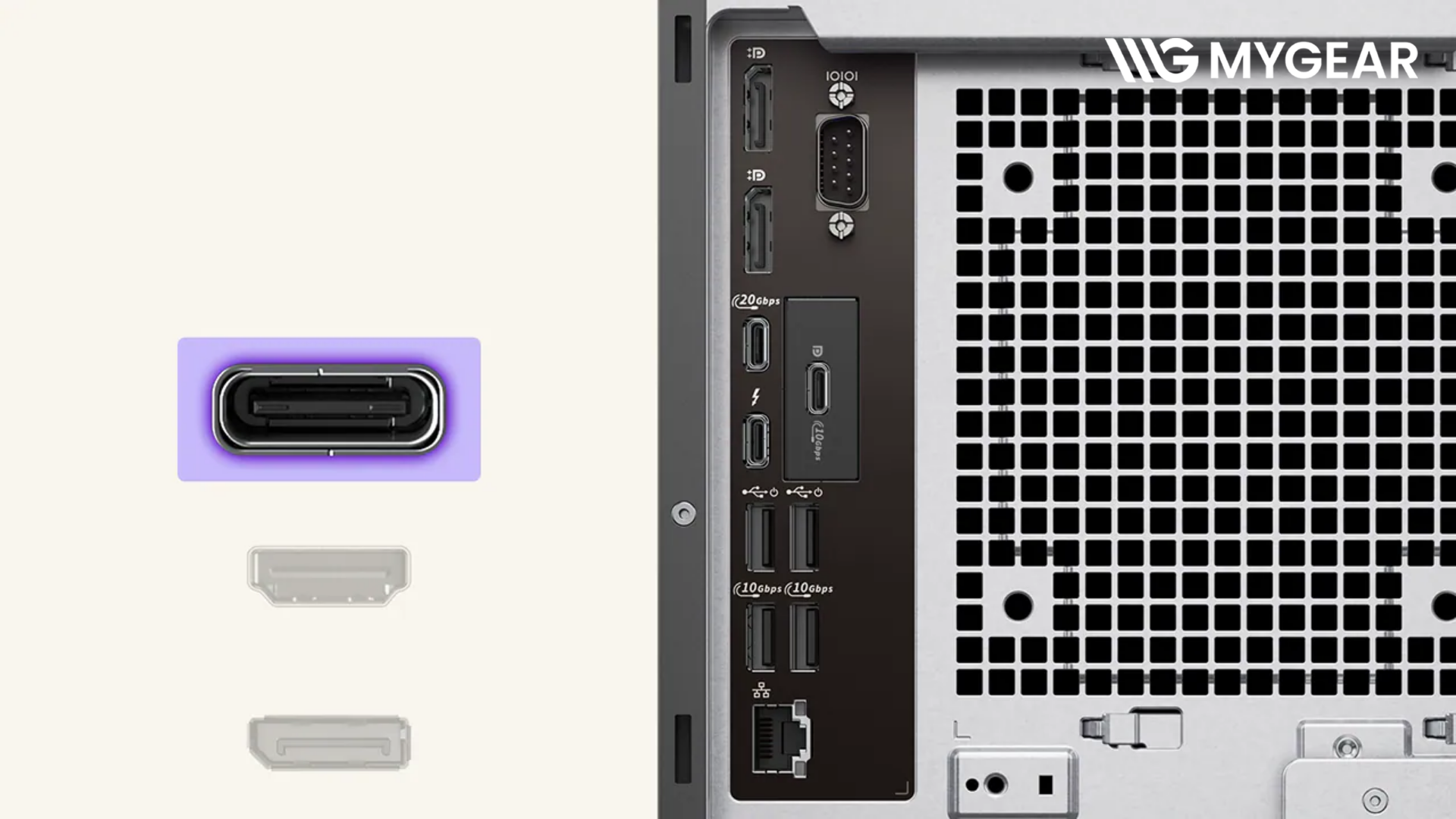 | Kết nối | RJ-45 Ethernet, USB Type-C, USB 3.2, DisplayPort |
