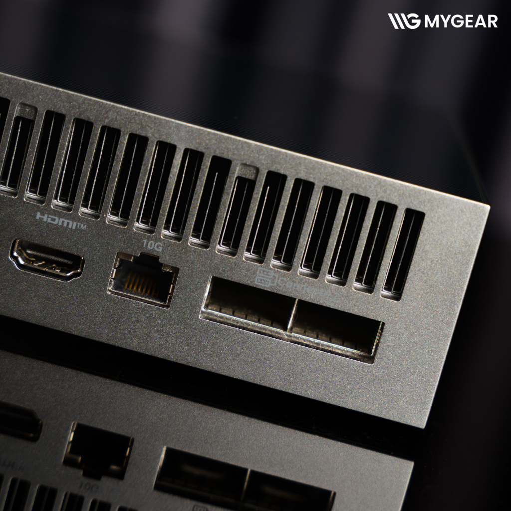 | Cổng I/O (trước / sau) | 3 × USB 3.2 Gen2x2 Type-C, 1 × USB-C PD in, 1 × HDMI 2.1, 1 × ConnectX-7 SmartNIC, 1 × LAN 10G, Kensington lock |