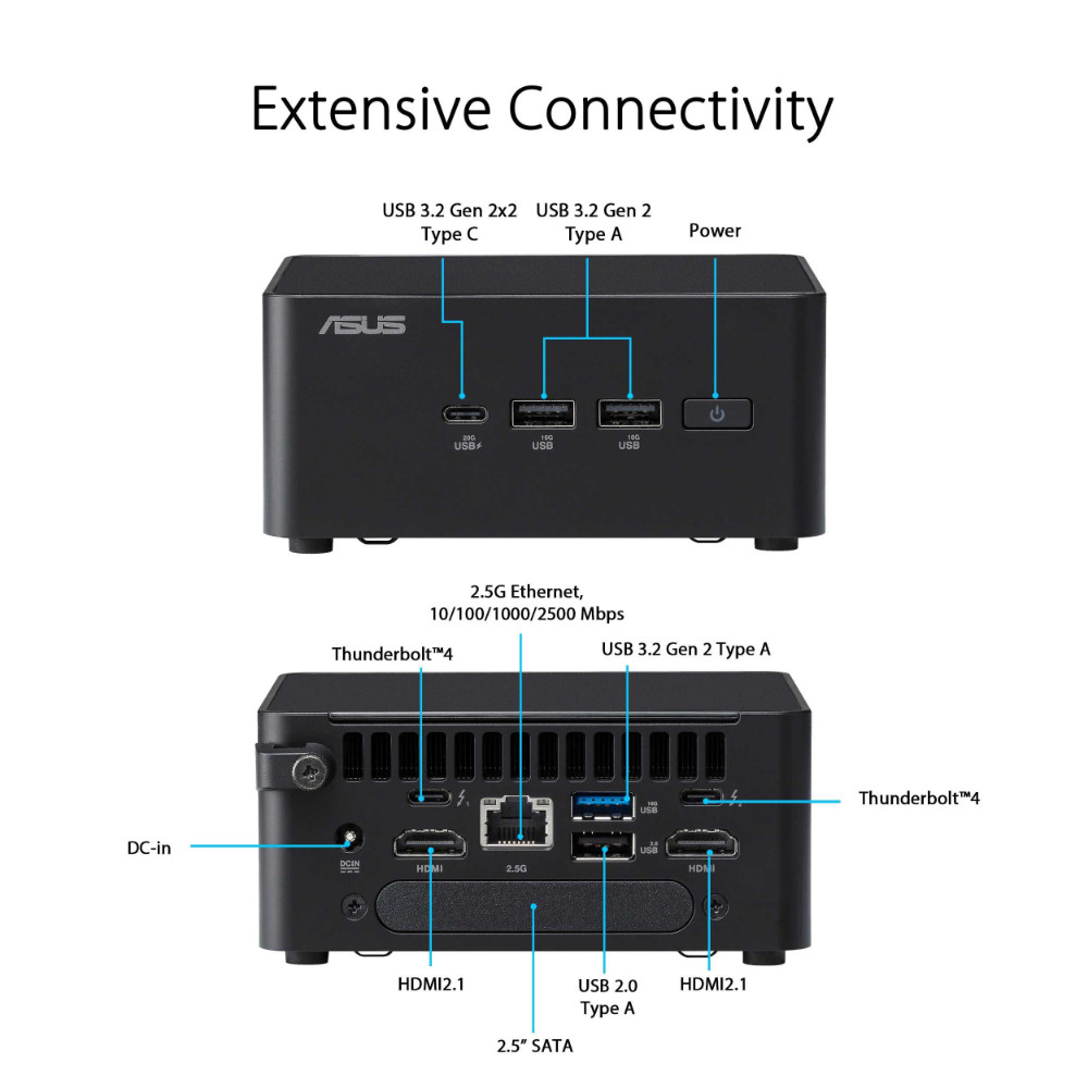 Với thiết kế PC mini barebone, người dùng hoàn toàn có thể tùy chọn dung lượng RAM, SSD để tối ưu chi phí và dễ dàng nâng cấp trong tương lai. Phiên bản ASUS NUC Tall hỗ trợ gắn thêm ổ cứng 2.5 inch, tăng dung lượng lưu trữ, rất phù hợp cho doanh nghiệp, văn phòng hoặc những ai cần một hệ thống nhỏ gọn nhưng đa năng.
