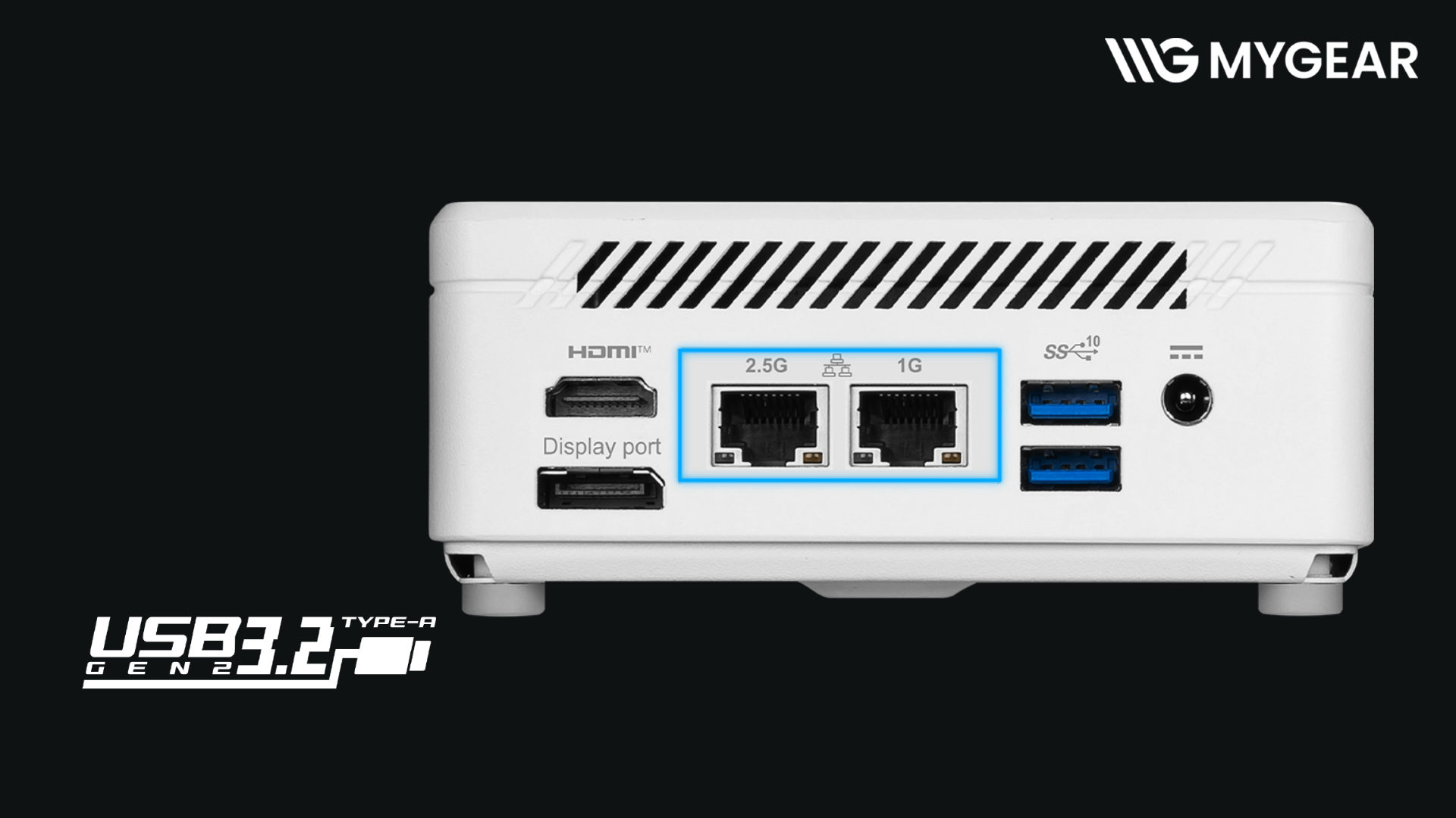 | Cổng I/O phía sau | 2x USB 3.2 Gen 2 Type A, 2x RJ45 (2.5G + 1G LAN), 1x HDMI 2.0b, 1x DP 1.4 |