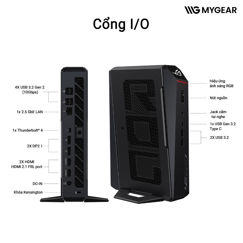 Sự kết hợp giữa CPU Intel Ultra 9 275HX, card màn hình RTX 5070 Ti và SSD 2TB tạo nên một cấu hình mạnh mẽ nhưng tiết kiệm không gian. Khi mua tại MYGEAR, người dùng có thể kết hợp ASUS ROG NUC RNUC15JNK9X38AA3 với màn hình gaming 2K 4K, bàn phím cơ ROG, chuột gaming, tai nghe cao cấp và các phụ kiện chính hãng đang có sẵn để hoàn thiện setup gaming đẳng cấp trong không gian tối giản.