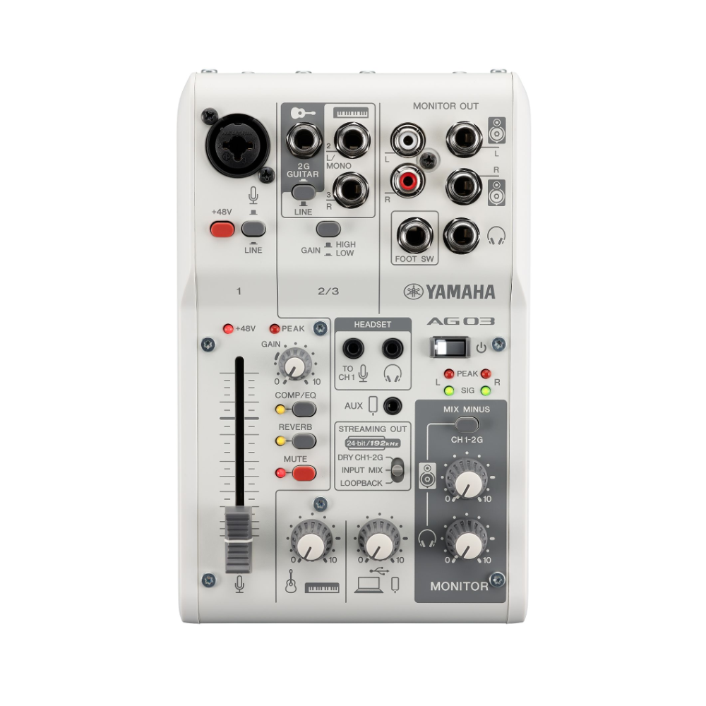 Mixer Yamaha AG03MK2 hiện đã có mặt tại MYGEAR với đầy đủ 2 màu trắng và đen, bảo hành chính hãng, giá tốt và hỗ trợ kỹ thuật tận tình. Đặt mua ngay hôm nay để nâng cấp chất lượng nội dung số của bạn!