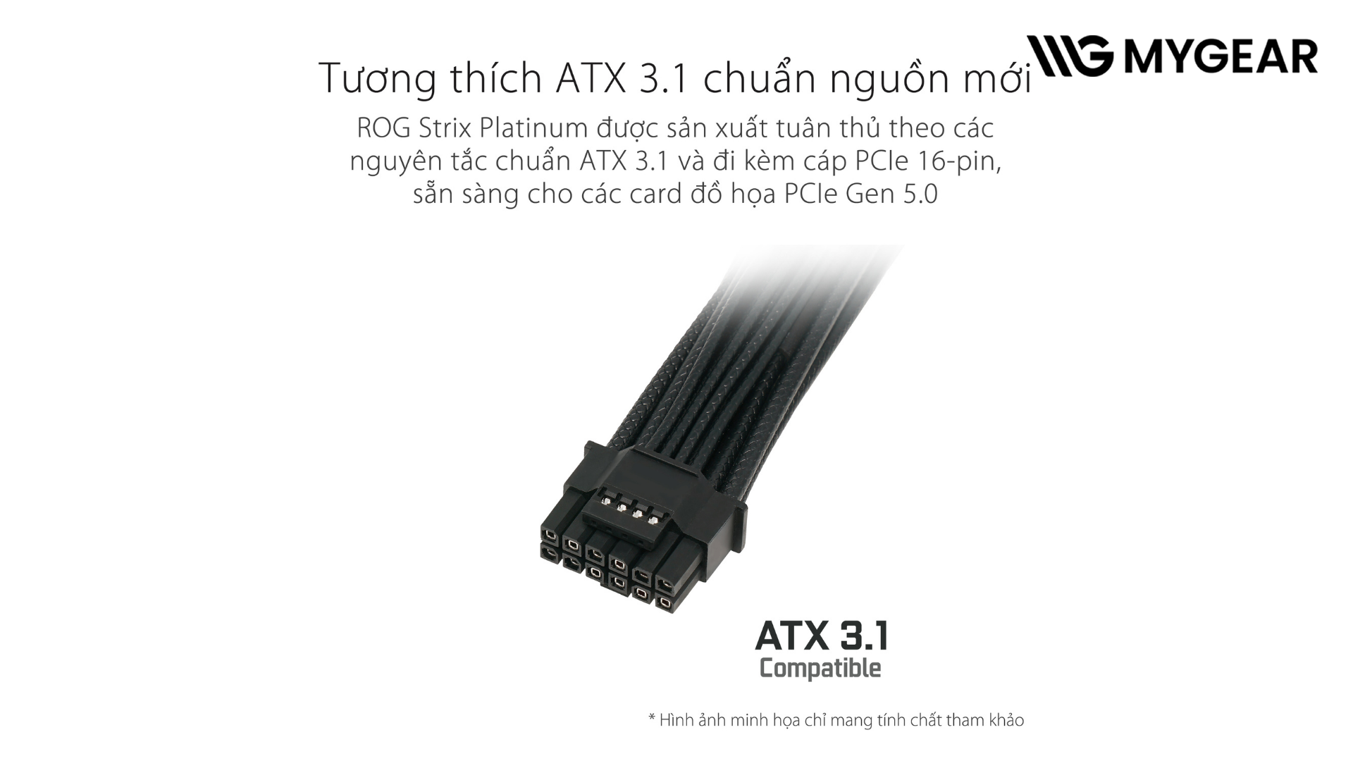 Với PSU ATX 3.1 ASUS ROG STRIX 1200W, sản phẩm tương thích hoàn hảo với các card màn hình và bo mạch chủ thế hệ mới nhất. Đặc biệt, cổng 12VHPWR tích hợp giúp nguồn có thể cấp điện ổn định cho các GPU như NVIDIA RTX 5080, 5090 mà không cần adapter rườm rà.