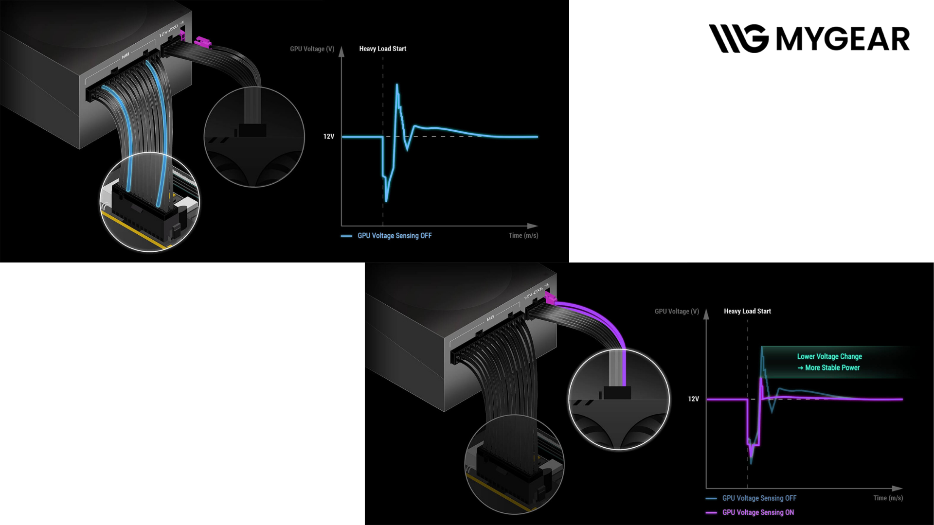 ROG Thor III 1200W tích hợp GPU-First Intelligent Voltage Stabilizer (IVS), ưu tiên ổn định điện áp cho card đồ họa nhằm giảm hiện tượng sụt áp khi tải nặng. Bên cạnh đó, Turbo Mode giúp tăng khả năng đáp ứng công suất tức thời, đặc biệt hữu ích trong các tác vụ đòi hỏi hiệu năng đỉnh cao.