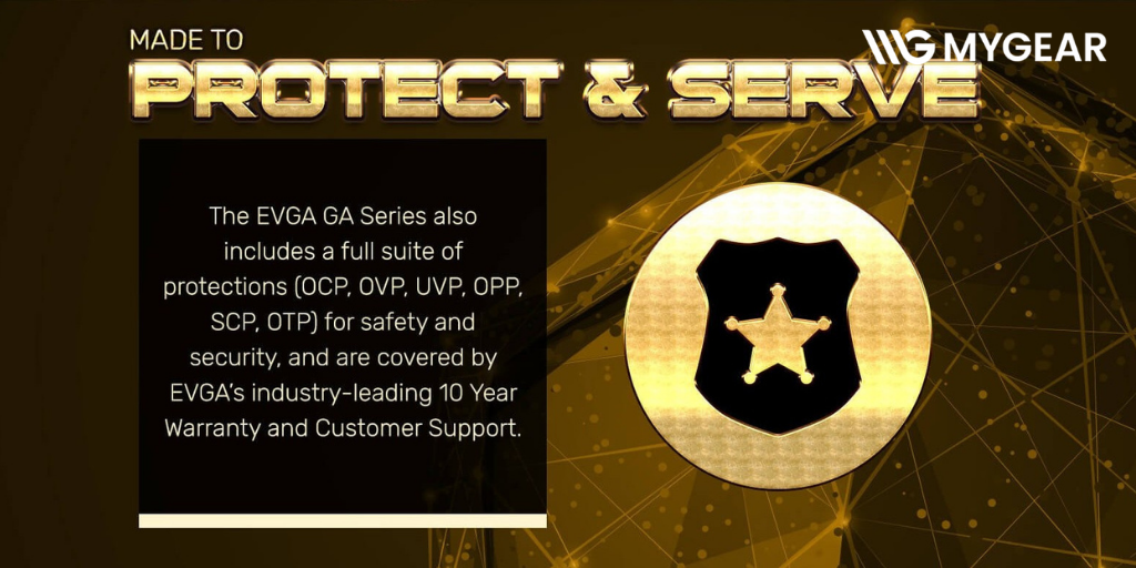 Toàn bộ nguồn EVGA 650 GA được trang bị tụ điện 100% Nhật Bản chịu nhiệt cao, đảm bảo tuổi thọ hoạt động lên đến 10 năm. EVGA cũng tích hợp hệ thống bảo vệ toàn diện (OCP, OVP, UVP, OPP, SCP, OTP) giúp ngăn ngừa hư hại do quá tải, quá dòng hoặc nhiệt độ cao, bảo vệ an toàn tuyệt đối cho toàn bộ linh kiện máy tính.