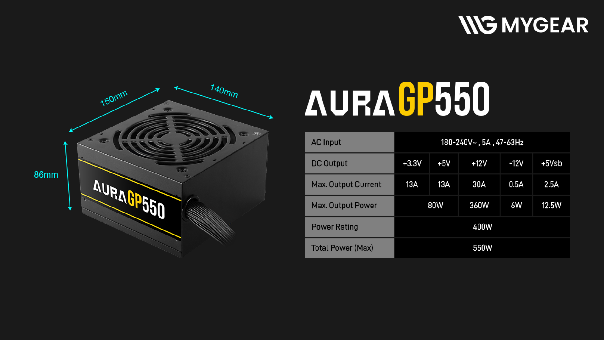 Ở phân khúc nguồn 550W, AURA GP550 là lựa chọn đáng cân nhắc cho những ai cần một bộ nguồn 80 Plus bền bỉ, dễ lắp đặt và tối ưu chi phí khi build PC gaming tại MYGEAR.
