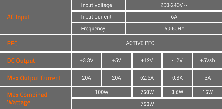 | Chuẩn hiệu suất | 80 PLUS Bronze (230V EU) |