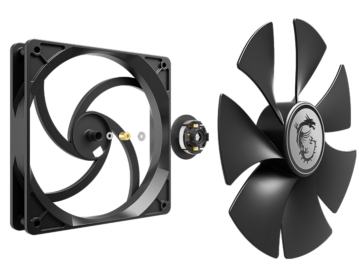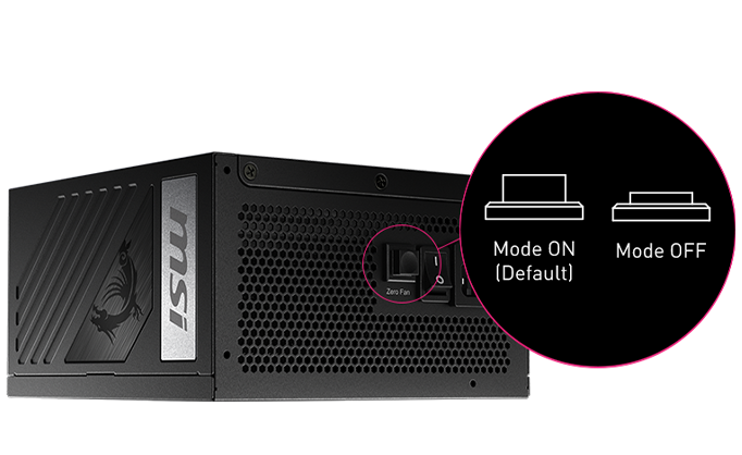 Nguồn MSI MPG A850G PCIE5 sử dụng quạt 135mm FDB (Fluid Dynamic Bearing) công nghệ quạt trục thủy lực siêu bền, vận hành êm ái, kéo dài tuổi thọ lên đến 100,000 giờ. Ngoài ra, PSU còn có chế độ Zero Fan Mode khi tải nhẹ hoặc ở nhiệt độ thấp, quạt sẽ tự động dừng, giảm tiếng ồn và tiết kiệm điện năng.