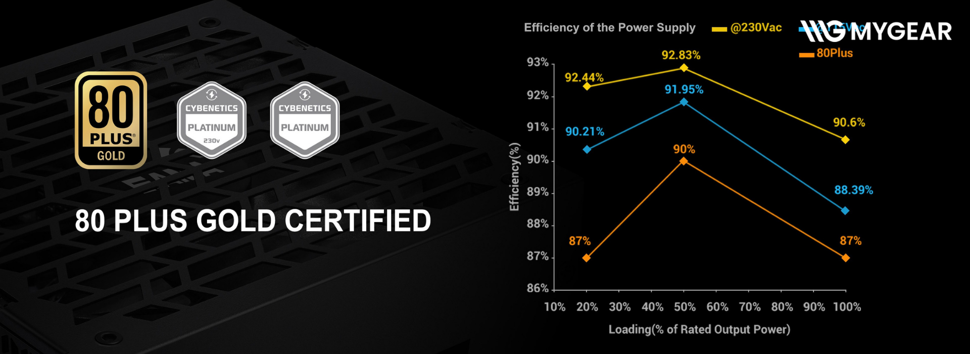 | Chuẩn hiệu suất | 80 Plus Gold |