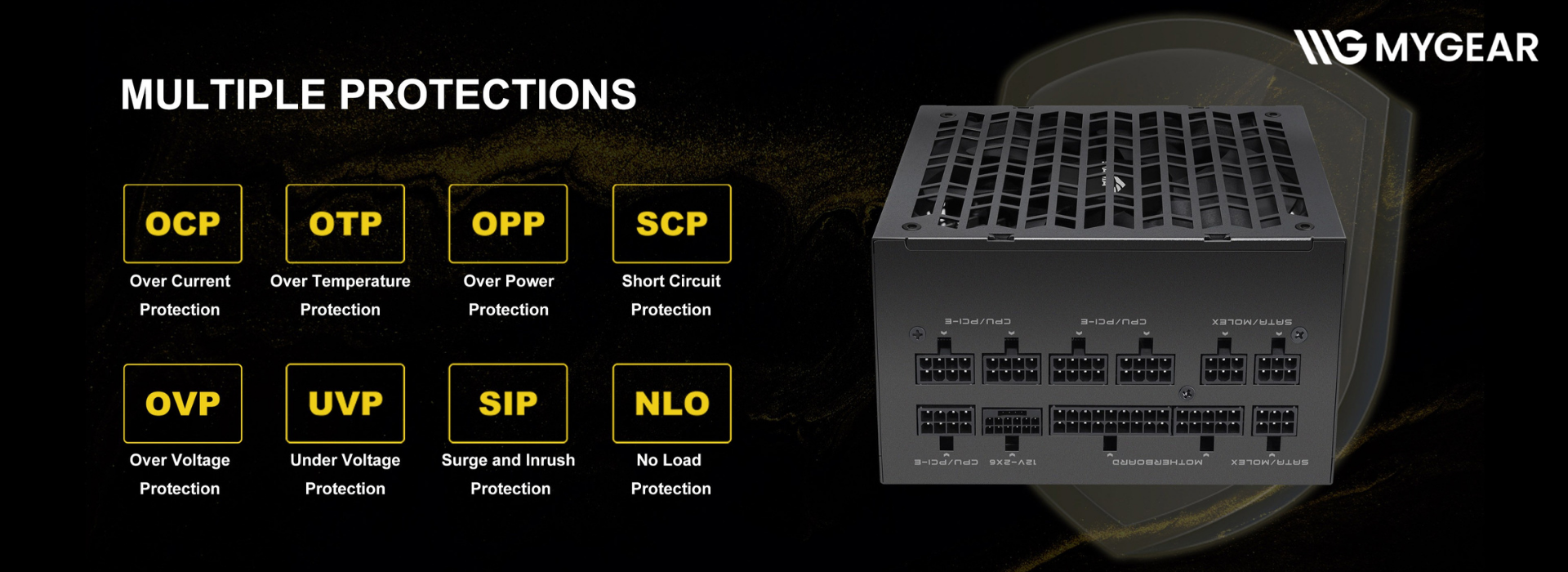 SAMA G850 được trang bị đầy đủ các cơ chế bảo vệ gồm OPP, OVP, UVP, SCP, OCP, OTP, giúp nguồn tự động ngắt khi xảy ra quá tải, quá áp, thấp áp, ngắn mạch, quá dòng hoặc quá nhiệt. Các tính năng bảo vệ đóng vai trò quan trọng trong việc bảo vệ CPU, GPU, mainboard và toàn bộ linh kiện khỏi rủi ro điện. Nhờ hệ thống bảo vệ toàn diện, PSU SAMA G series mang đến sự an tâm cho người dùng khi vận hành cấu hình công suất cao trong thời gian dài.