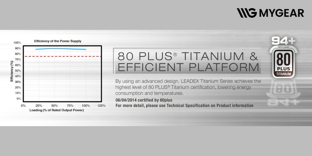 Nguồn máy tính 80 Plus Titanium LEADEX 1600W là chứng nhận cao cấp nhất trong hệ thống đánh giá hiệu suất nguồn điện, đảm bảo hiệu suất chuyển đổi trên 94% ở mức tải 50%. Điều này có nghĩa là ít thất thoát điện năng hơn, tỏa nhiệt thấp hơn và tiết kiệm điện hơn, giúp hệ thống vận hành ổn định, mát mẻ và bền bỉ trong thời gian dài.