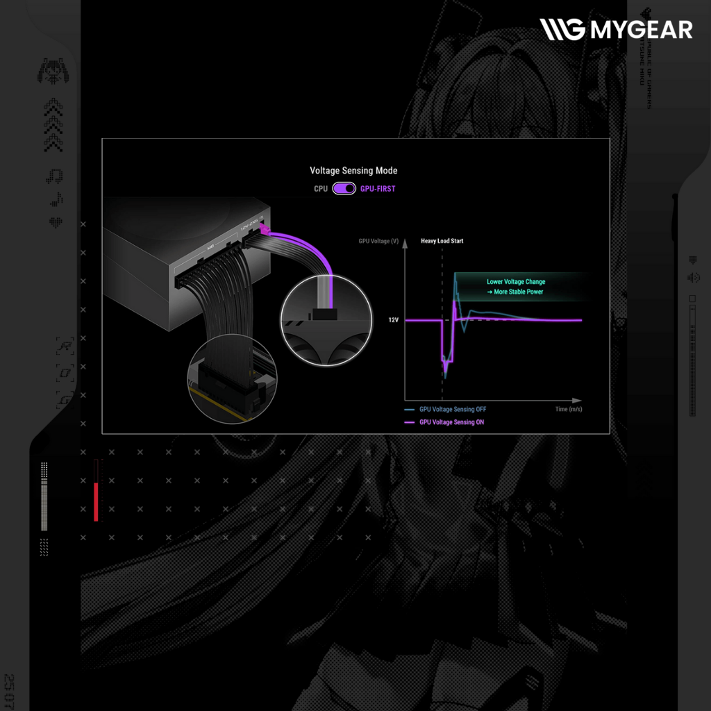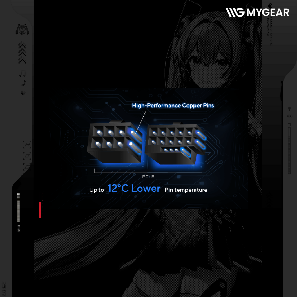 ROG Thor 1200W Platinum III Hatsune Miku Edition sử dụng GaN MOSFET thế hệ mới, giúp cải thiện hiệu suất, giảm nhiệt và tăng độ ổn định dòng điện. Nhờ đó, nguồn hoạt động mát mẻ và bền bỉ hơn so với các bộ nguồn truyền thống.