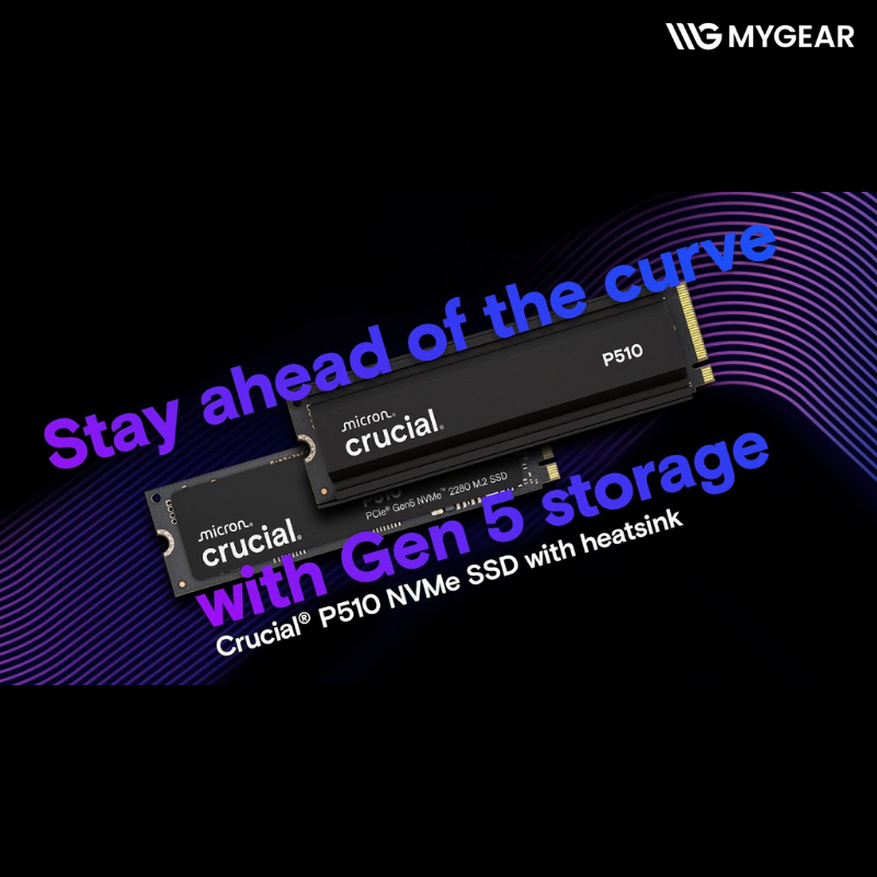 Với hiệu năng vượt trội của SSD NVMe Gen5 1TB, đây là lựa chọn lý tưởng cho cấu hình PC gaming flagship, máy dựng phim chuyên nghiệp hoặc workstation cao cấp. Khi mua tại MYGEAR, SSD Crucial P510 có thể kết hợp hoàn hảo với mainboard Z790, Z890, B650E, X670E, RAM DDR5 tốc độ cao và CPU Intel Core hoặc AMD Ryzen mới nhất đang có sẵn, giúp tối ưu toàn diện sức mạnh hệ thống.