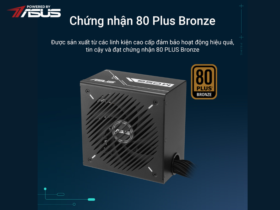 Nguồn ASUS PRIME công suất thực 650W chuẩn 80 Plus Bronze giúp cung cấp điện năng ổn định, tiết kiệm và an toàn cho toàn bộ hệ thống. Đây là lựa chọn lý tưởng cho pc đồ họa tầm trung, đảm bảo khả năng vận hành liên tục trong nhiều giờ mà không lo sụt áp hay quá tải.