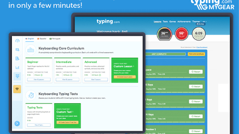 Typing.com là web luyện gõ 10 ngón miễn phí từ cơ bản đến nâng cao, sử dụng trực tiếp trên trình duyệt. Phần mềm hiển thị bàn phím ảo và vị trí đặt tay đúng chuẩn giúp người học dễ làm quen. Người dùng có thể theo dõi tiến độ luyện tập thông qua các bài học và bài kiểm tra. Giao diện thân thiện, dễ nhìn, phù hợp cho học sinh và người mới tập gõ.