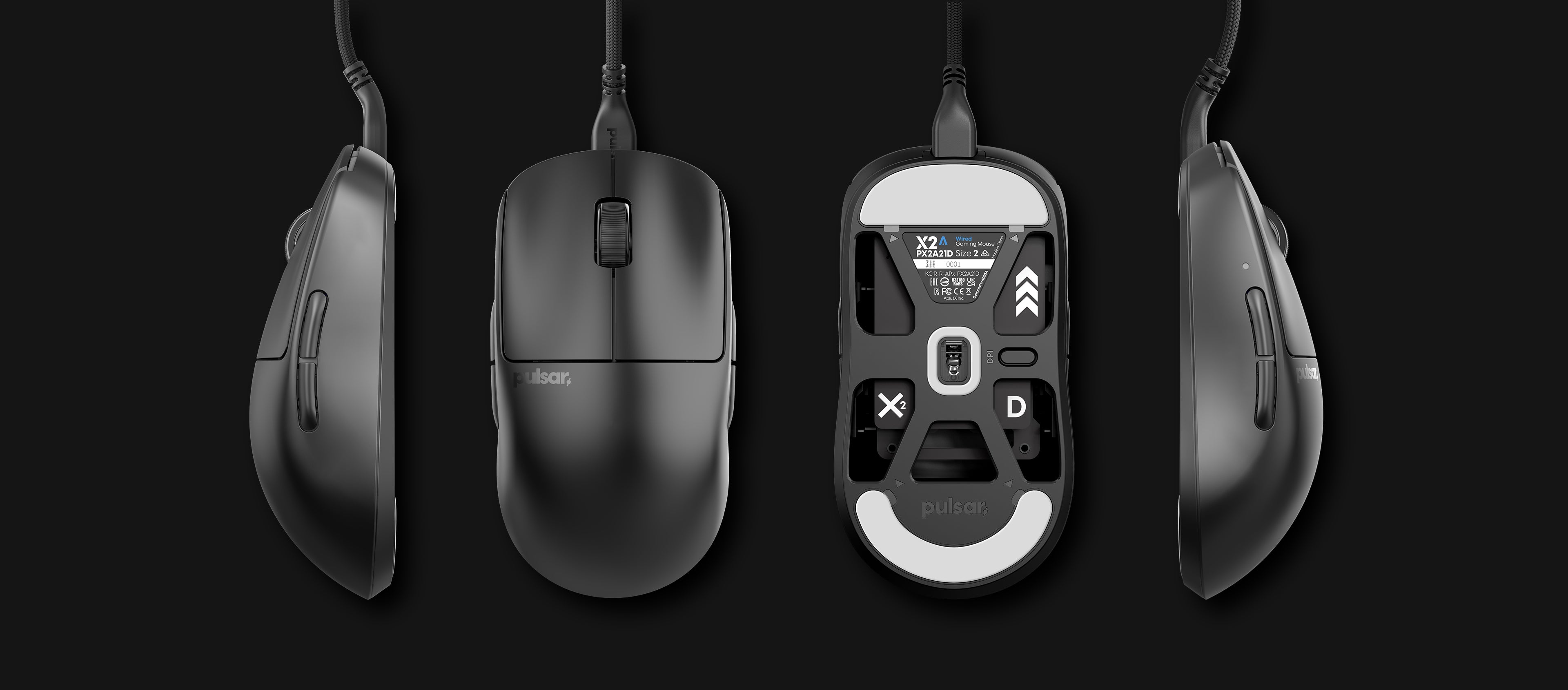 | Pulsar X2A Wired | PAW3395 | 100 - 26000 DPI | 1000Hz | 120.4 x 65 x 39 mm |