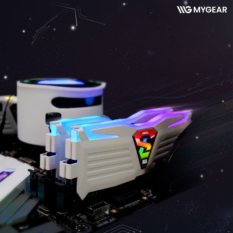 Thiết kế RGB sống động kết hợp tản nhiệt nhôm không chỉ giúp RAM vận hành ổn định mà còn nâng tầm thẩm mỹ cho hệ thống. Tại MYGEAR, bạn có thể kết hợp RAM Geil Super Luce White RGB 8GB với CPU, card màn hình và SSD NVMe cao cấp để xây dựng một dàn PC đồng bộ, mạnh mẽ và đầy phong cách.