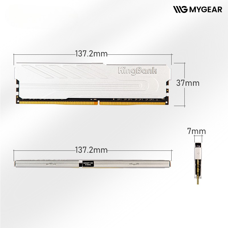 RAM KingBank KJXS sử dụng chuẩn DDR4 DIMM 288-pin phổ biến, giúp tương thích với nhiều mainboard hiện nay. Nhờ đó, RAM DDR4 KingBank 16GB 3200MHz dễ dàng lắp đặt và nâng cấp trong nhiều cấu hình PC.