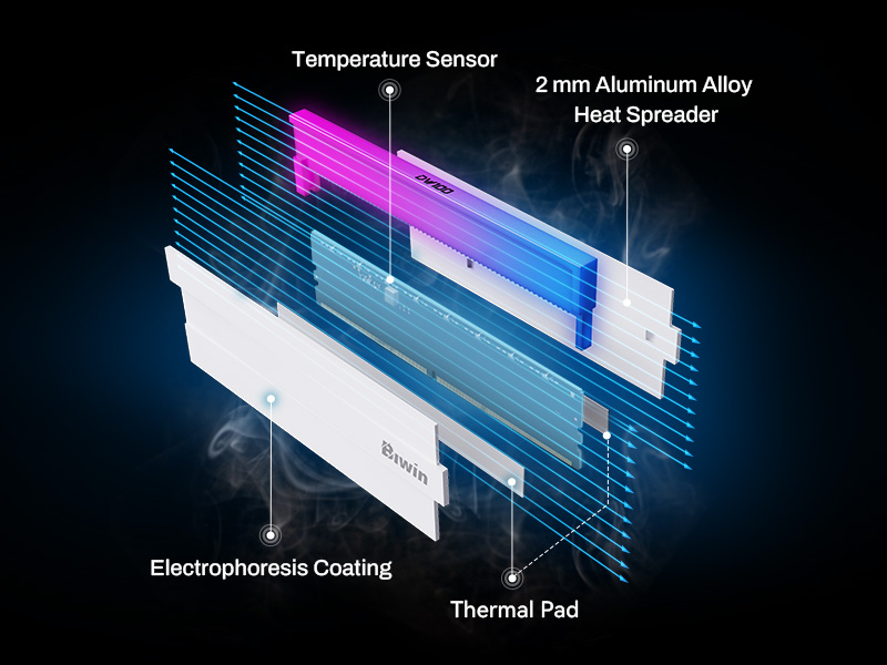 RAM BIWIN Black Opal DW100 32GB được trang bị tản nhiệt nhôm cao cấp sơn đen mờ giúp tản nhiệt nhanh, giữ cho mô-đun hoạt động ổn định kể cả khi ép xung. Thiết kế tản nhiệt low-profile không cản trở các linh kiện khác như tản CPU khí hoặc AIO.