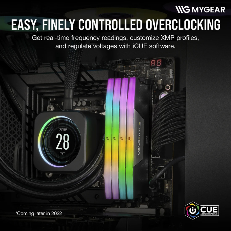 Corsair Vengeance RGB 96GB sử dụng DDR5 bus 6000MHz, hỗ trợ Intel XMP 3.0, giúp tự động ép xung ổn định, tối ưu hiệu năng cho cả game thủ và người dùng chuyên nghiệp.