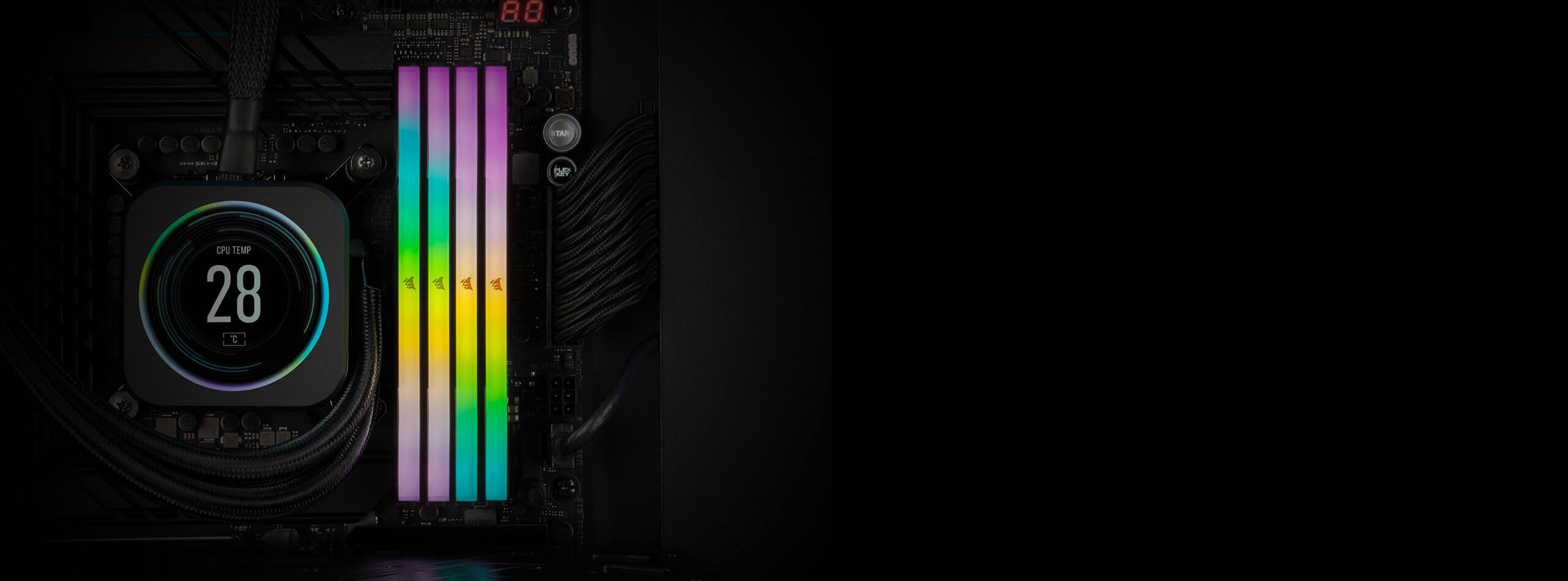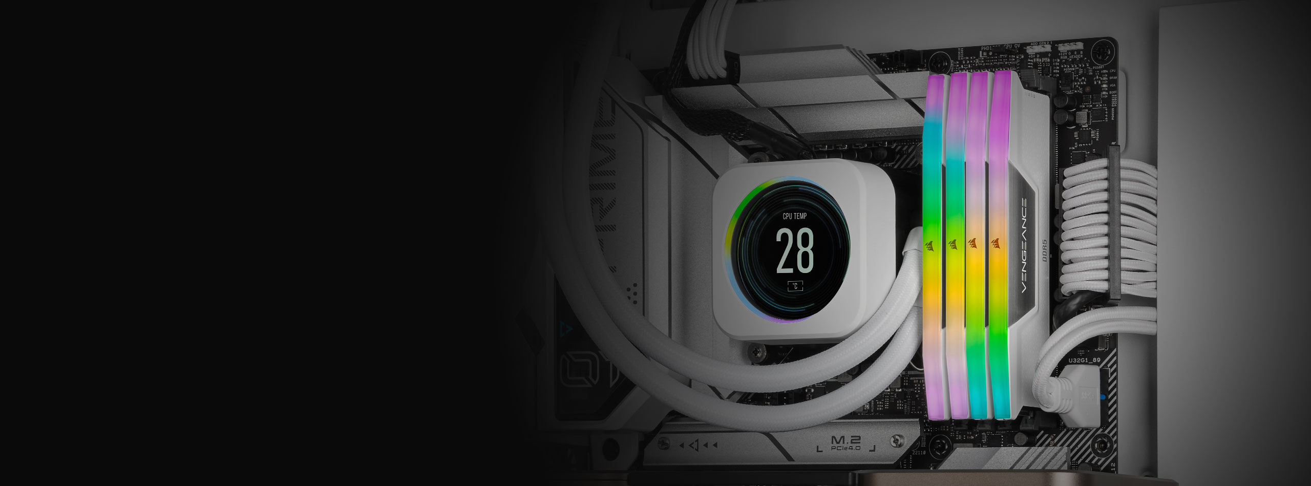 Với tản nhiệt đen mạnh mẽ, đậm chất gaming, Corsair Vengeance RGB Black không chỉ đem lại hiệu năng, mà còn tăng tính thẩm mỹ cho góc máy của bạn. Hệ thống RGB đa vùng tích hợp cho phép bạn tùy chỉnh hiệu ứng ánh sáng linh hoạt qua phần mềm Corsair iCUE, dễ dàng đồng bộ với bo mạch chủ, card đồ họa, bàn phím, tản nhiệt nước và các thiết bị RGB khác. Nếu bạn đang tìm một bộ RAM gaming RGB Corsair mang tính biểu tượng, vừa đẹp vừa mạnh thì phiên bản này là ứng cử viên không thể bỏ qua.