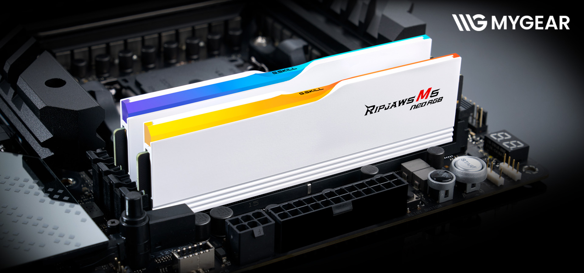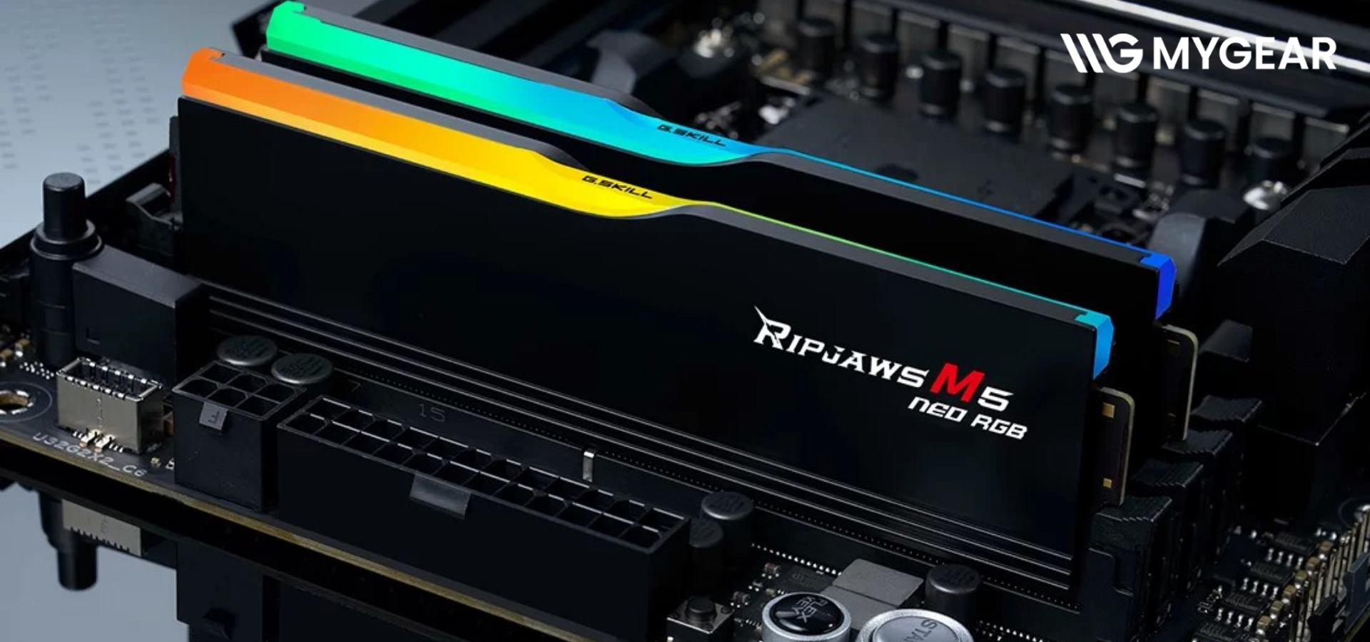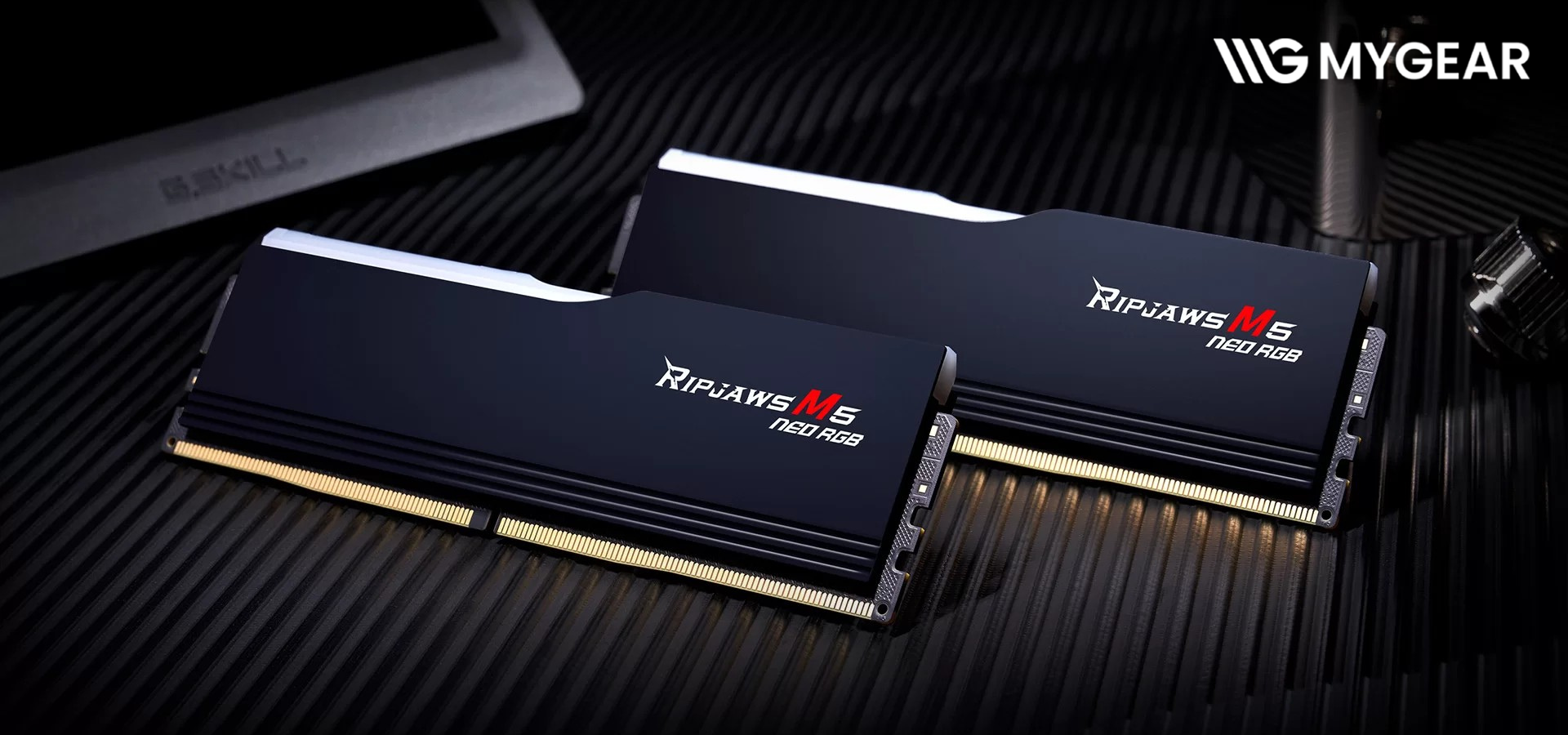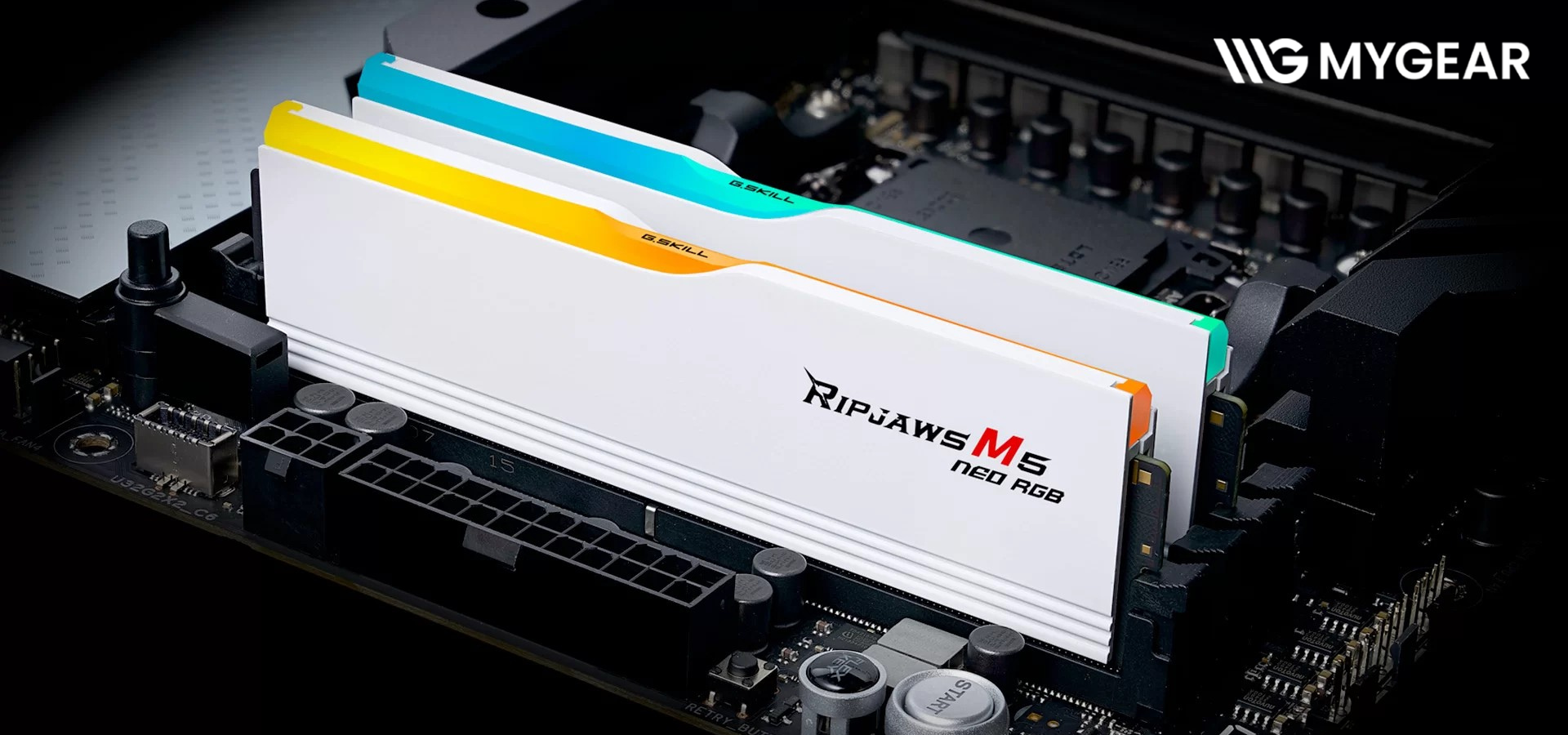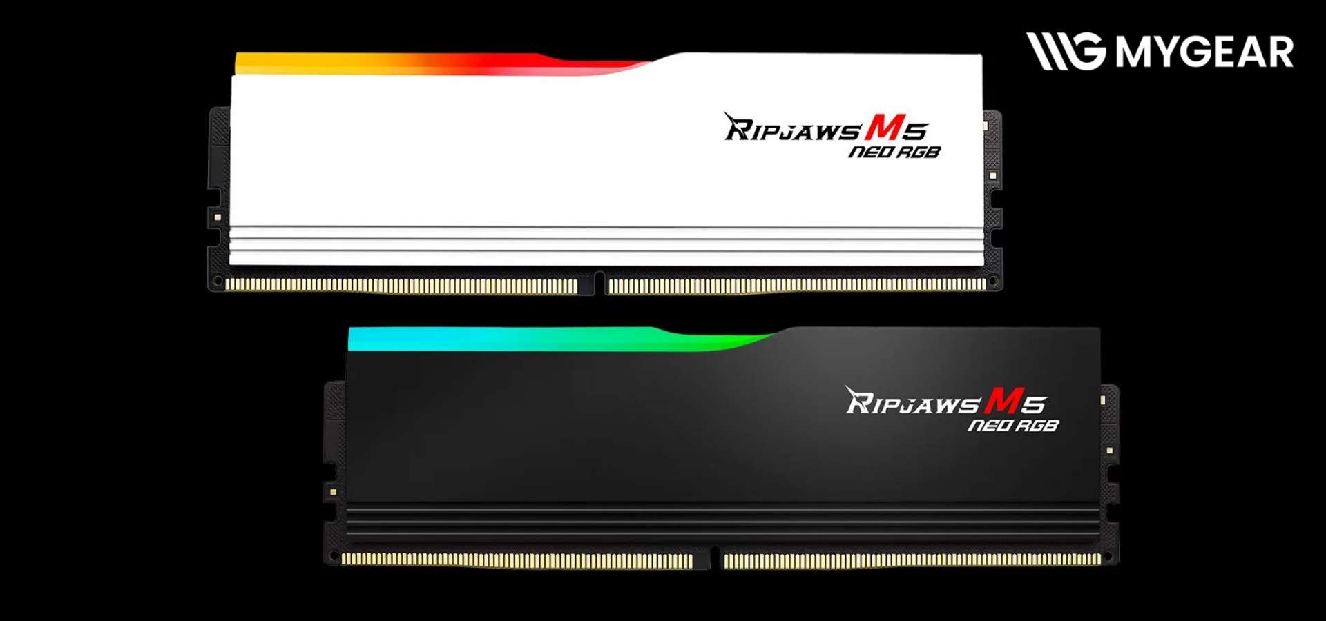 Mua ngay RAM DDR5 G.Skill Ripjaws M5 Neo RGB 64GB tại MYGEAR để nâng cấp sức mạnh cho dàn máy của bạn thật nhanh, đẹp và ổn định vượt trội!