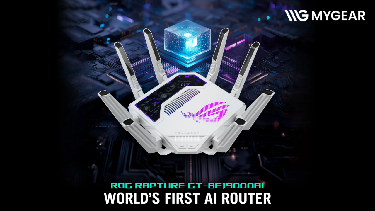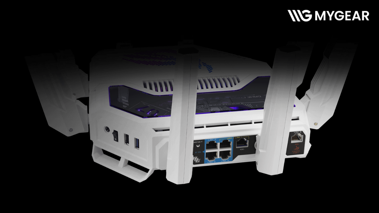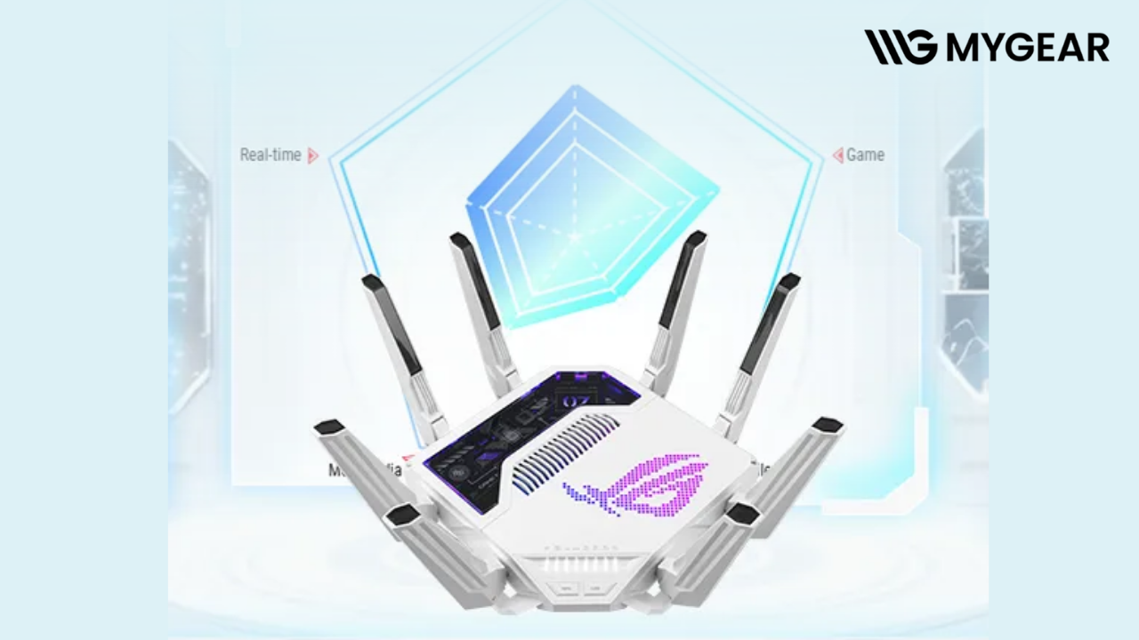 Nâng cấp trải nghiệm Internet của bạn lên tầm cao mới với router WiFi 7 ASUS GT-BE19000AI – router chơi game ASUS ROG cao cấp, hiện đã có tại MYGEAR, địa chỉ tin cậy dành cho những ai yêu công nghệ và tốc độ.