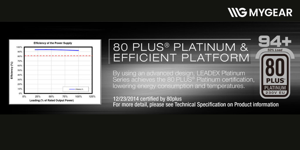 Đạt chuẩn 80 Plus Platinum, Super Flower Leadex Platinum 2000W mang đến hiệu suất chuyển đổi điện năng lên đến 94%, giúp giảm nhiệt lượng, tiết kiệm điện và bảo vệ linh kiện khỏi dao động điện áp. Đây là tiêu chuẩn hàng đầu dành cho hệ thống PC hoạt động liên tục, yêu cầu độ ổn định cao.