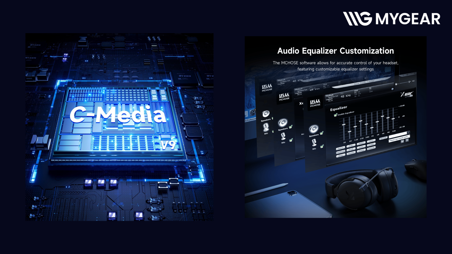 Mchose V9 Pro sử dụng chip xử lý âm thanh C-Media tích hợp công nghệ Xear™, giúp tối ưu khả năng xử lý âm thanh trong game.Nhờ công nghệ âm thanh, tai nghe không dây Mchose mang lại trải nghiệm âm thanh rõ ràng hơn, giúp người chơi dễ dàng xác định vị trí âm thanh trong game.