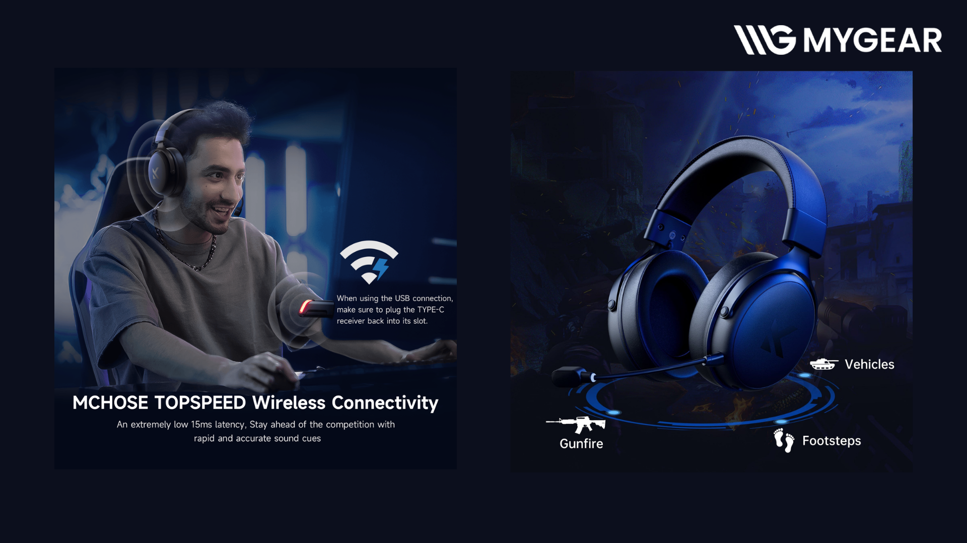 Một trong những điểm đáng chú ý của Mchose V9 Pro Wireless là độ trễ chỉ khoảng 15ms nhờ công nghệ MCHOSE® TOPSPEED. Độ trễ thấp giúp tai nghe gaming 250h pin mang lại trải nghiệm âm thanh gần như tức thời khi chơi game, đặc biệt hữu ích với các tựa game FPS hoặc eSports yêu cầu phản xạ nhanh.
