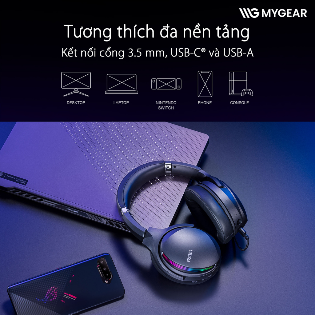 Headset gaming ROG Fusion II 500 tương thích với hầu hết các nền tảng phổ biến như PC gaming, Mac, PS4, PS5, Nintendo Switch, Xbox One, Xbox Series X/S, iPad, giúp bạn linh hoạt sử dụng trong mọi tình huống.