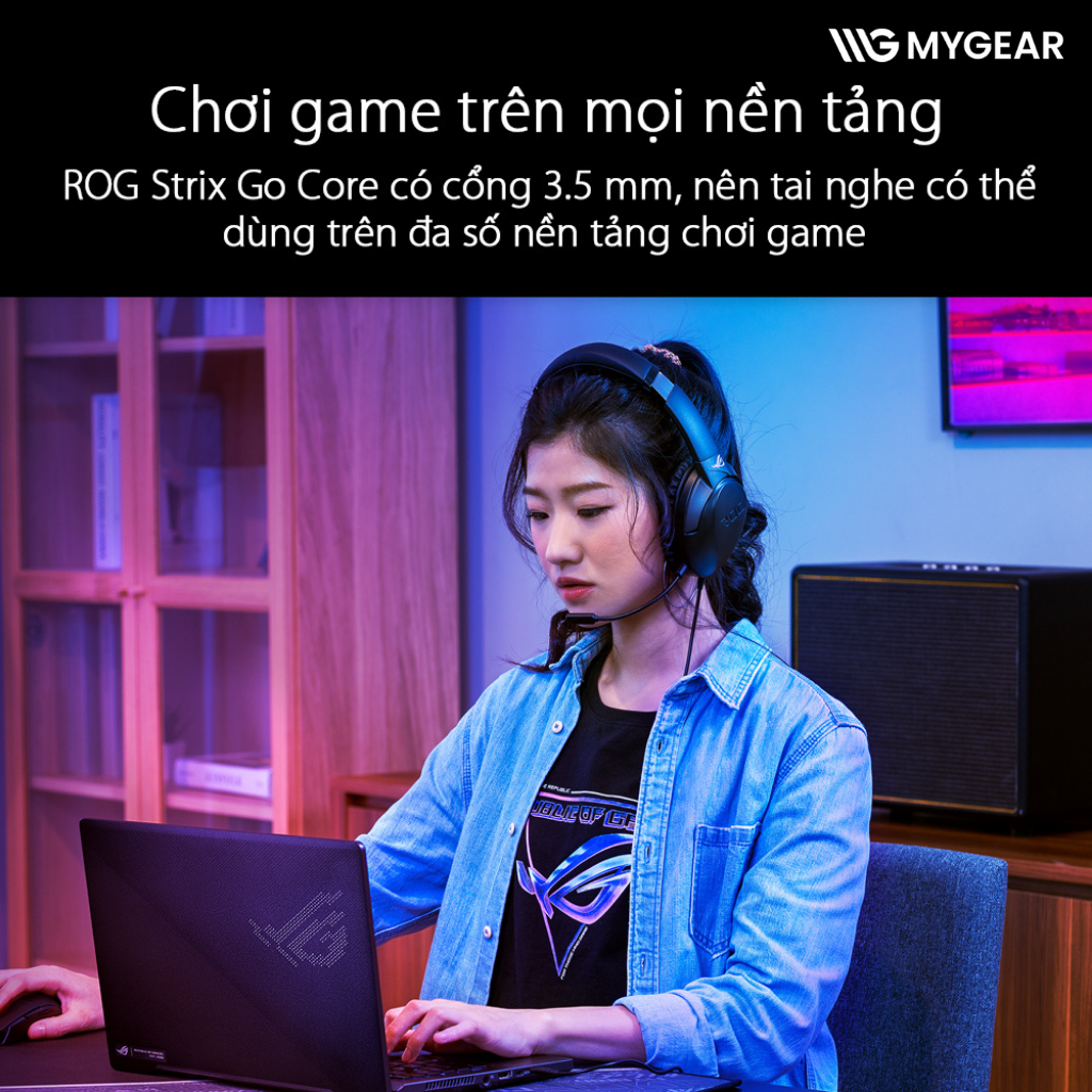 Tai nghe ROG Go Core hoạt động tốt trên PC gaming, Mac, PS4, PS5, Nintendo Switch, Xbox One và Xbox Series X/S, giúp game thủ có thể sử dụng một chiếc tai nghe cho mọi hệ máy mà không cần mua thêm phụ kiện.
