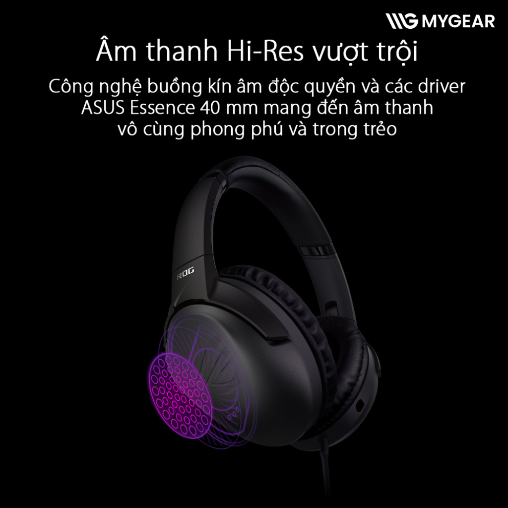 ASUS ROG Strix Go Core sử dụng trình điều khiển 40 mm nam châm Neodymium đảm bảo âm thanh sống động với âm trầm mạnh mẽ, âm trung cân bằng và âm cao trong trẻo, giúp game thủ cảm nhận chi tiết từng âm thanh trong game.