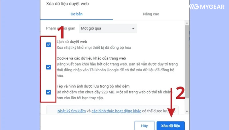 1. Xóa bộ nhớ cache và cookie trình duyệt