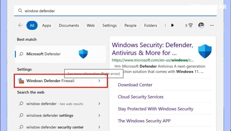 - Bước 1: Tìm Windows Defender Firewall trong ô Search