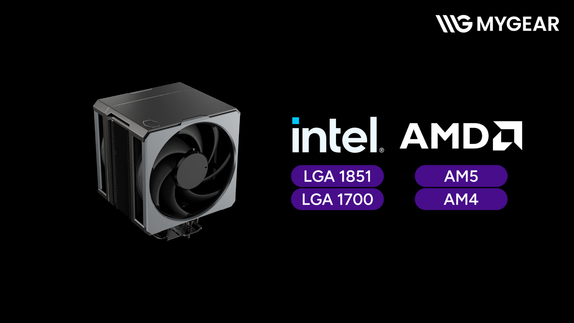 Cooler Master Hyper 612 Apex Black hỗ trợ đa dạng socket gồm Intel LGA 1851, 1700, 1200, 115x và AMD AM5, AM4. Điều này giúp tản nhiệt khí đen phù hợp cho cả hệ thống Intel lẫn AMD, từ cấu hình gaming phổ thông đến PC làm việc cao cấp. Khả năng hỗ trợ socket mới như LGA 1851 và AM5 giúp người dùng yên tâm nâng cấp CPU trong tương lai.