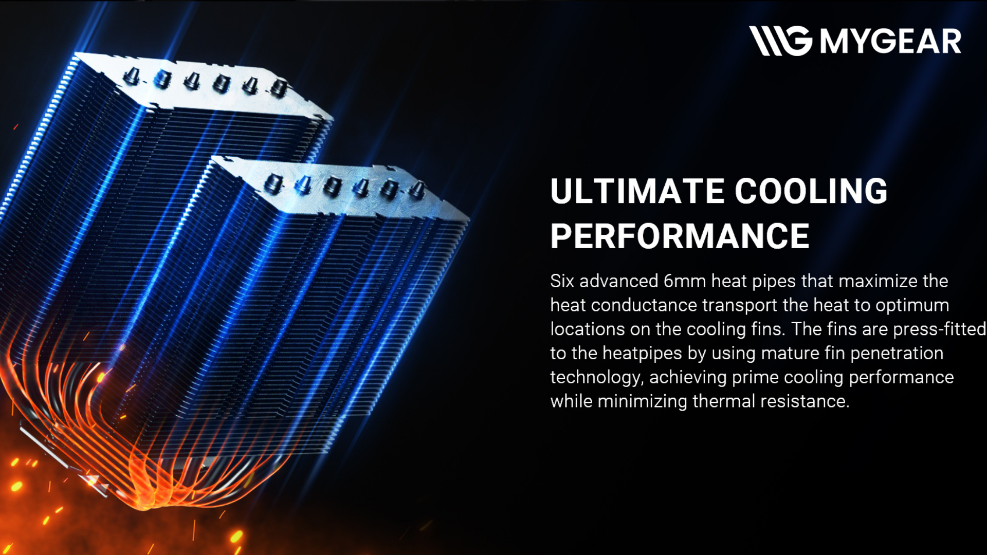 | Chất liệu tản nhiệt | 6×Ф6mm Ống dẫn nhiệt + Đế đồng + Lá nhôm |