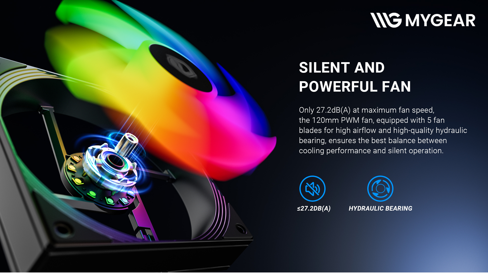 Trọng lượng chỉ 1190g (bao gồm tản nhiệt và quạt) không chỉ giúp giảm áp lực lên bo mạch chủ mà còn giúp dễ dàng hơn trong việc di chuyển. Hệ thống quạt với kích thước 120×120×25mm (2 cái) có khả năng vận hành với tốc độ từ 300±200 đến 2000±10% RPM, tạo ra lưu lượng khí tối đa 58CFM. Độ ồn tối đa của ID-COOLING FROZN A620 PRO SE ARGB chỉ là 27.2dB(A), giúp giảm thiểu tiếng ồn trong môi trường làm việc hoặc chơi game.