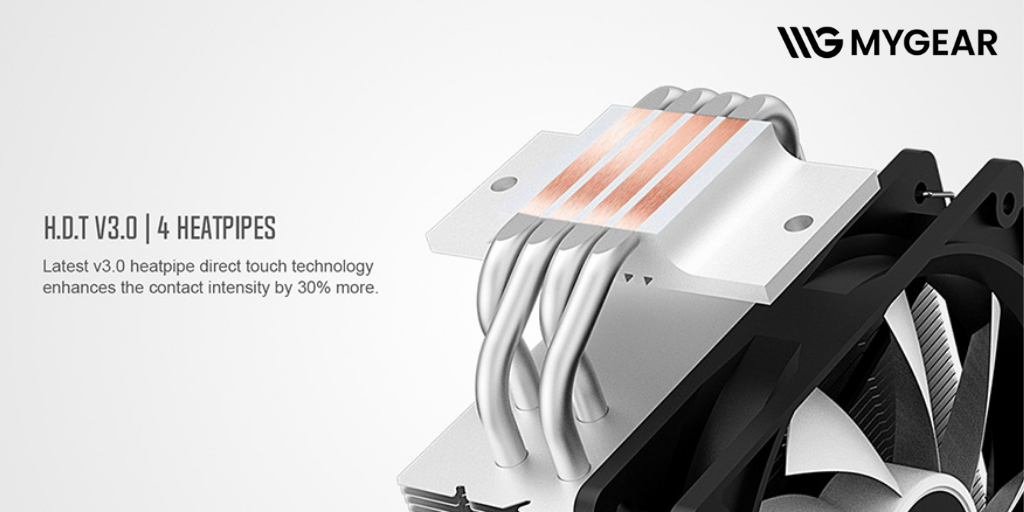 | Đặc điểm nổi bật | Top cover phay xước, đồng bộ ARGB qua mainboard, không cấn RAM, công nghệ H.D.T V3.0 tăng 30% diện tích tiếp xúc |