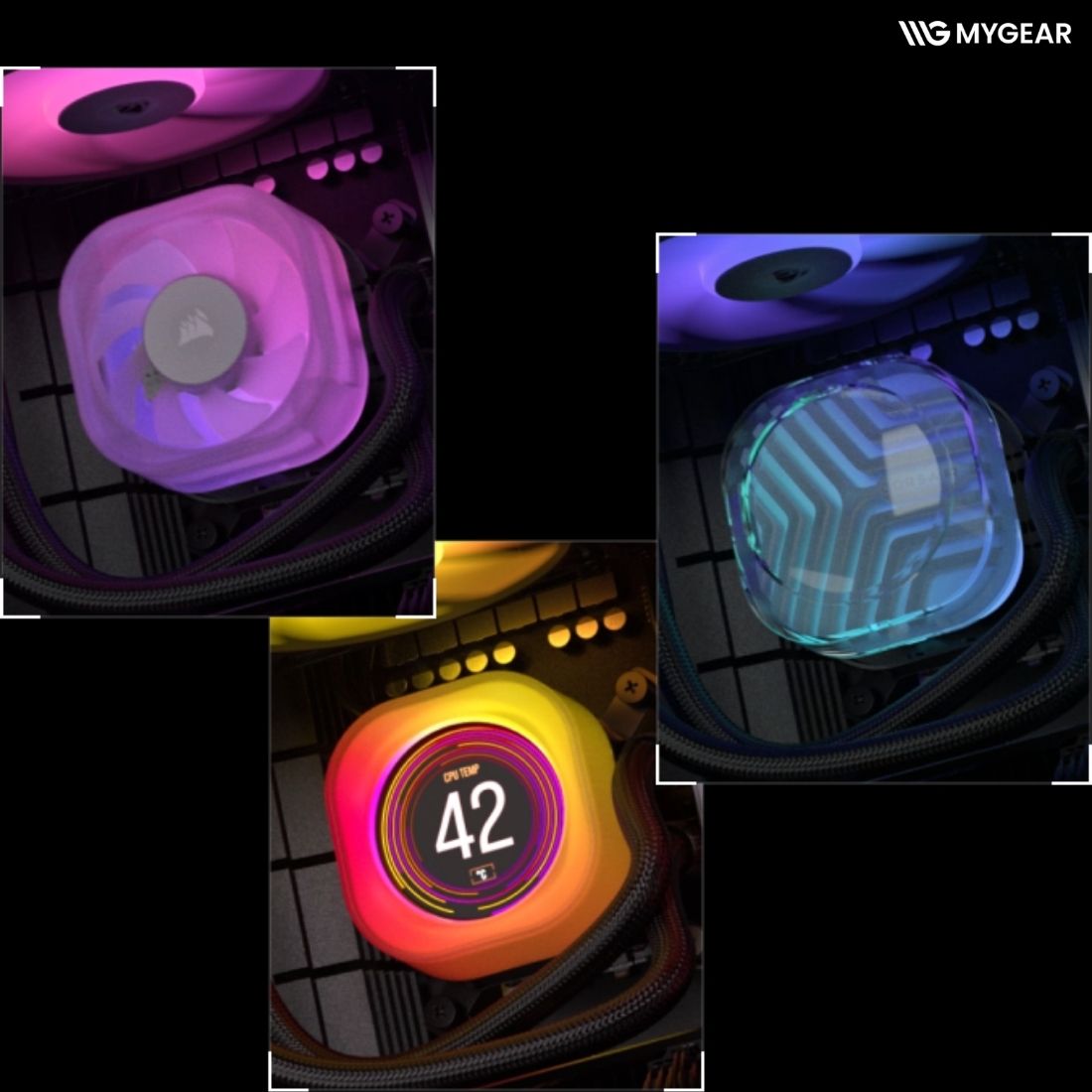 Là một phần trong hệ sinh thái Corsair iCUE, bộ tản nhiệt nước Corsair TITAN 360 RX tích hợp hệ thống ARGB nhiều vùng trên cả block và quạt. Người dùng có thể dễ dàng thiết lập các hiệu ứng ánh sáng động, đồng bộ với các linh kiện khác như RAM, card đồ họa, vỏ case thông qua phần mềm iCUE. Hiệu ứng ánh sáng mượt mà, đa dạng sẽ giúp dàn máy trở nên nổi bật hơn bao giờ hết, đặc biệt là trong các không gian gaming chuyên nghiệp.