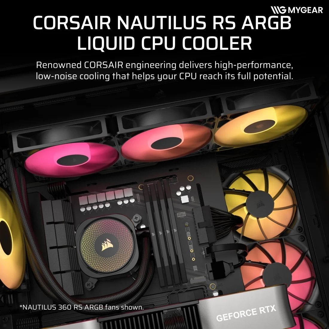 Corsair Nautilus 240 RS ARGB Black là lựa chọn tản nhiệt hoàn hảo dành cho người dùng muốn tối ưu hiệu suất làm mát mà vẫn đảm bảo ngoại hình đẹp và độ ổn định cao. Đặt mua ngay tại MYGEAR để nhận ưu đãi và hỗ trợ kỹ thuật tận tâm nhất!