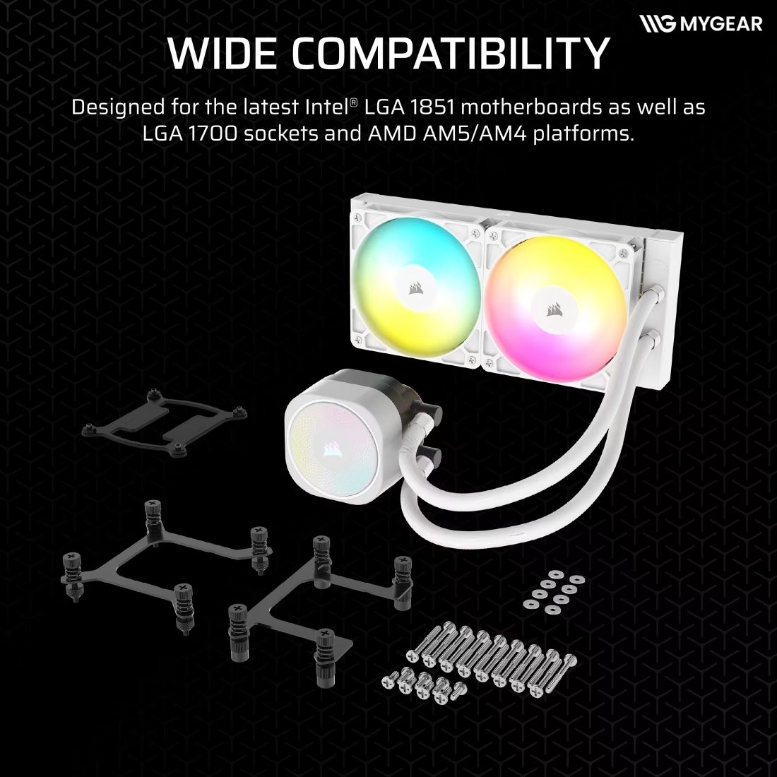Sản phẩm hỗ trợ hầu hết các socket CPU phổ biến như Intel LGA 1700, 1851 và AMD AM5, AM4. Điều này giúp tản nhiệt Corsair Nautilus 240 RS ARGB trắng dễ dàng tích hợp vào các hệ thống sử dụng vi xử lý mới nhất như CPU Intel Gen 12/13/14 và CPU AMD Ryzen 5000/7000 series mà không cần mua thêm phụ kiện.